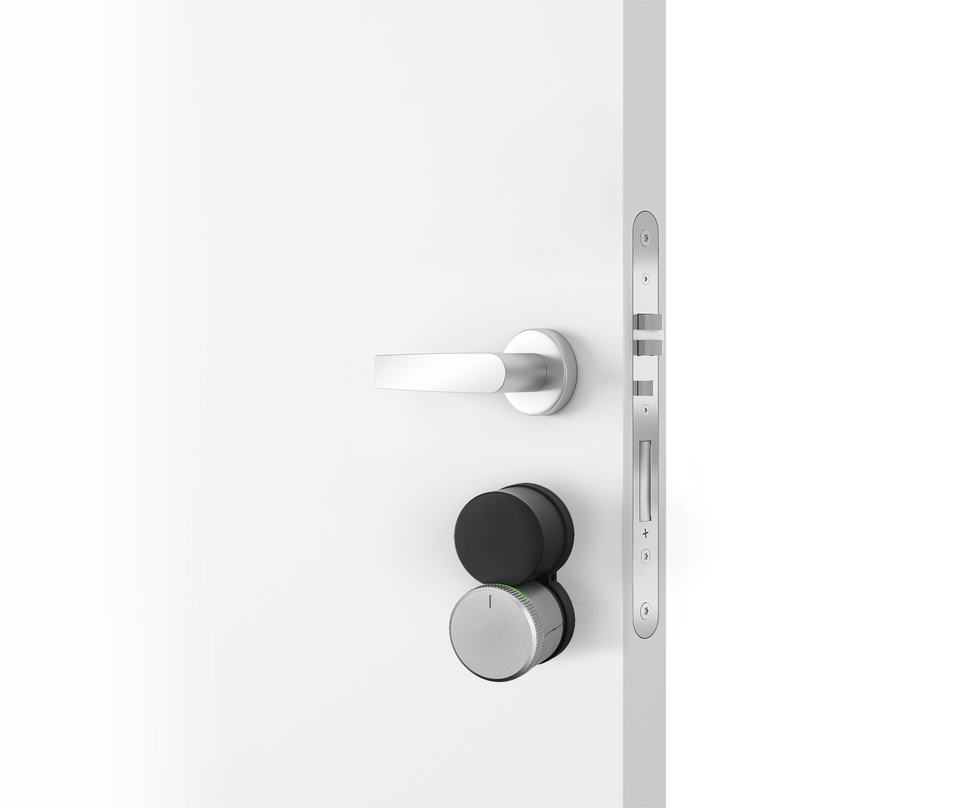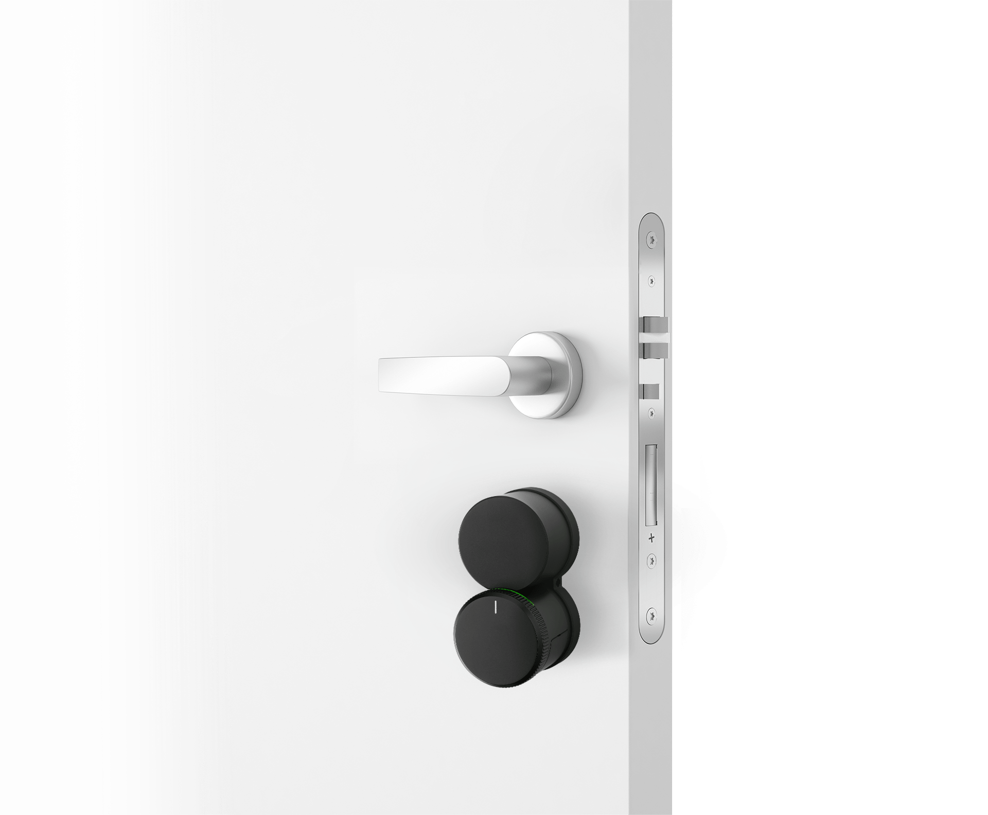 Med sit kompakte design monteres DLok Euro Compact Turner-adapteren diskret på indersiden af døren og er usynlig udefra. Dermed bevares både den eksisterende hardware og dørens æstetik, samtidig med at funktionaliteten udvides og udtrykket forbliver enkelt og rent. Den installationsvenlige løsning giver adgang til en sikker og forbundet låseoplevelse med automatiske låse- og oplåsningsfunktioner, som sikrer, at døren kan tilgås på det rette tidspunkt.